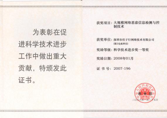 1.¡°´ó¹æÄ£ÍøÂç¶ñÒâÐÅÏ¢¼ì²âÓë¿ØÖÆÊÖÒÕ¡±ÈÙ»ñ½ÌÓý²¿¡°¿ÆÑ§ÊÖÒÕǰ½ø½±Ò»µÈ½±¡± ¡£